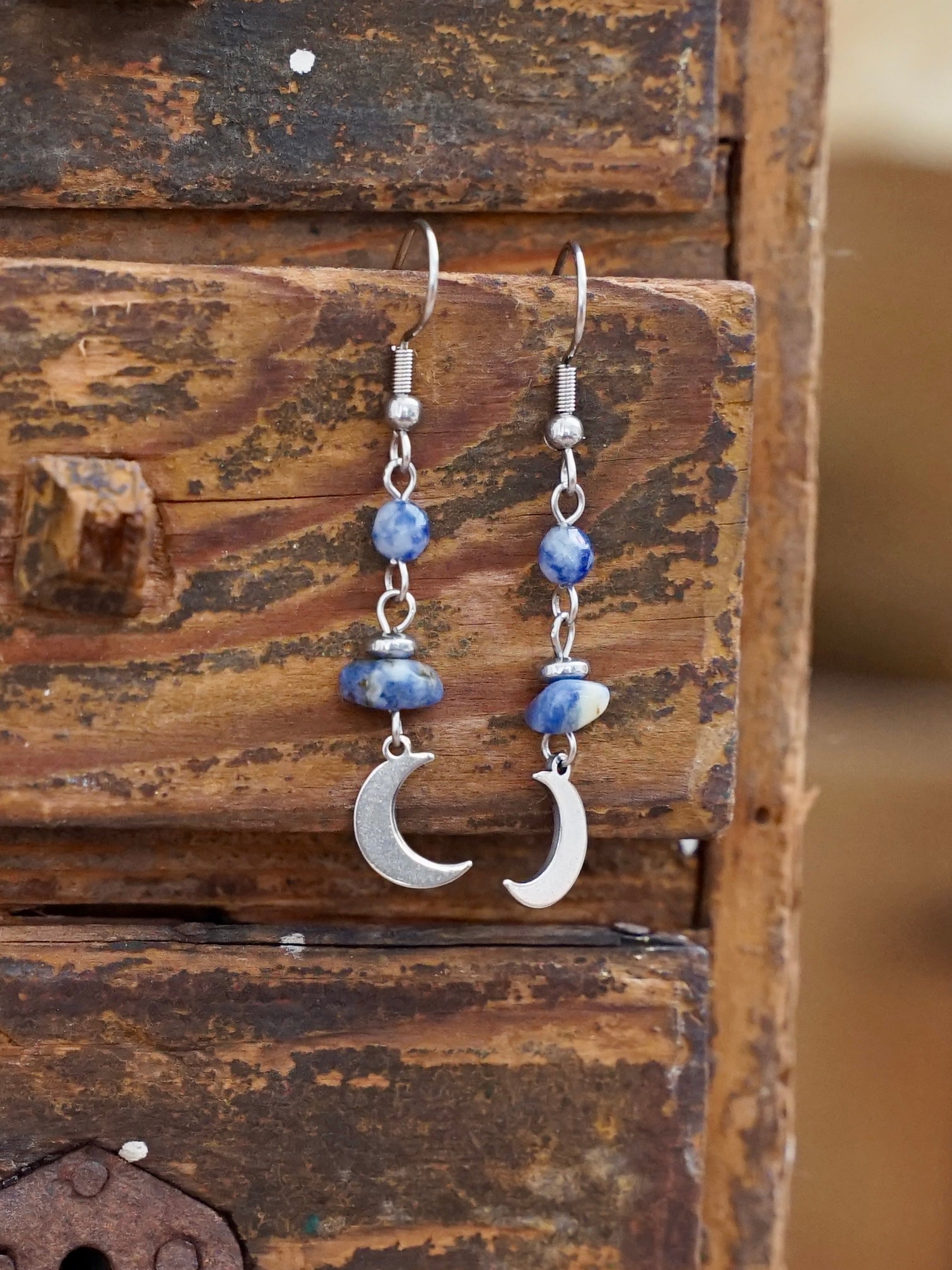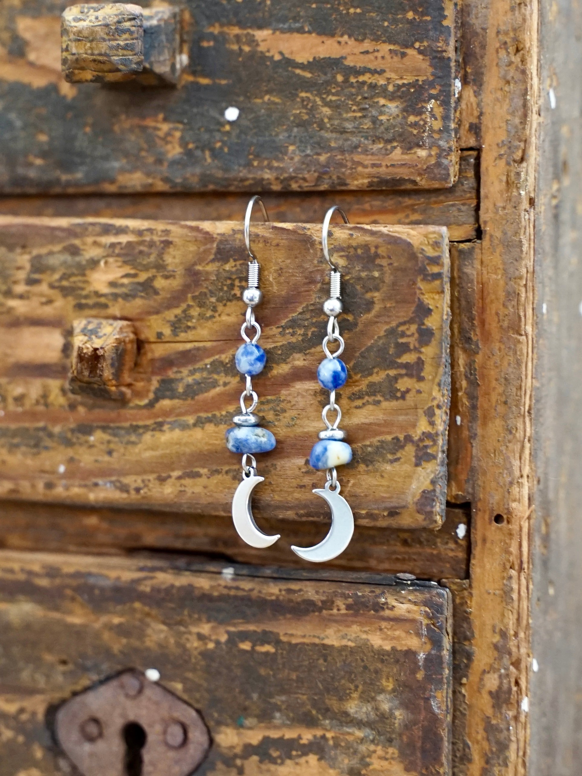✨ Handgefertigte Ohrringe mit Sodalith und Halbmondanhänger aus Edelstahl