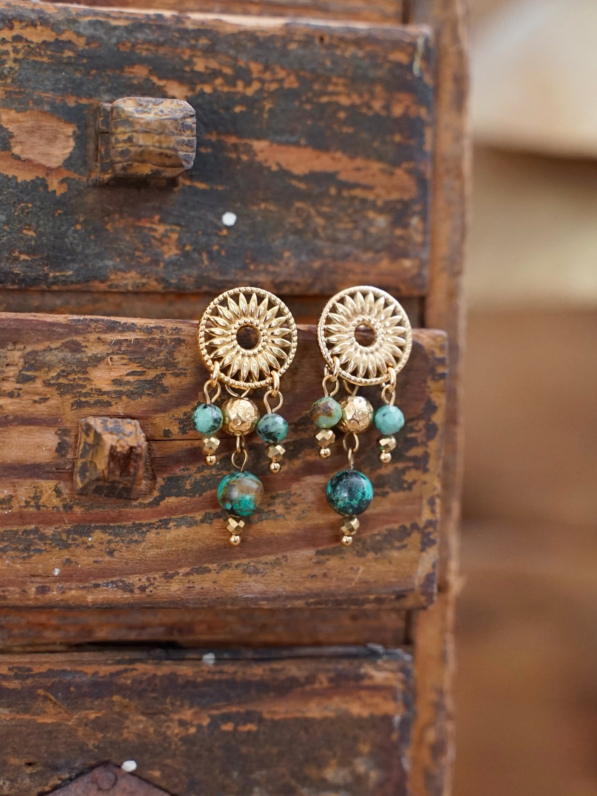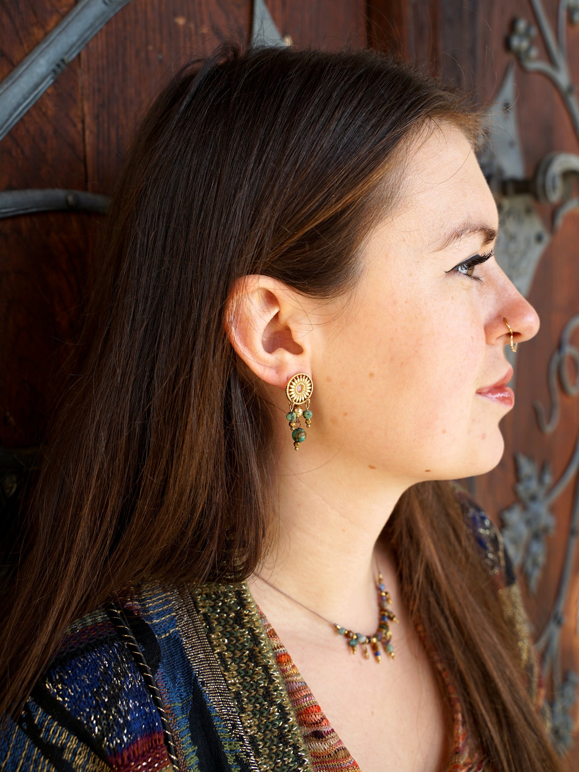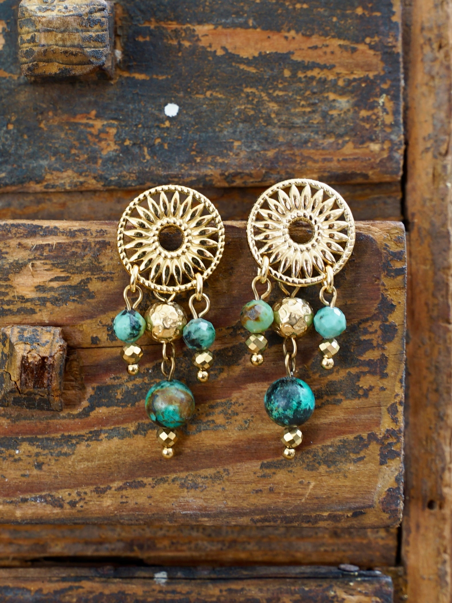 ✨ Elegante Ohrringe mit Türkis, Hämatit und vergoldetem Edelstahlstecker