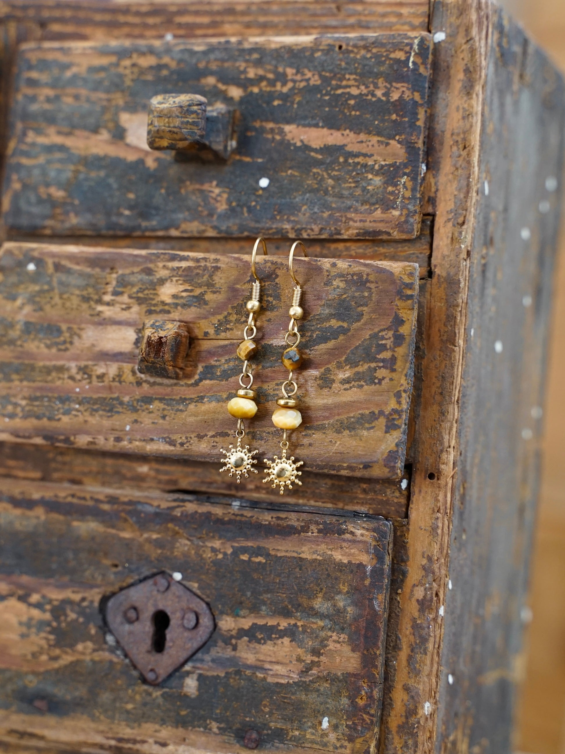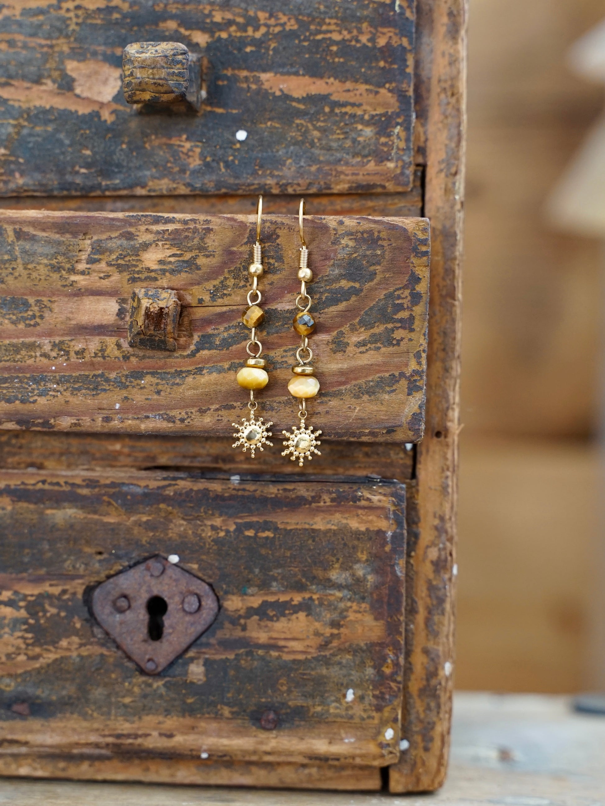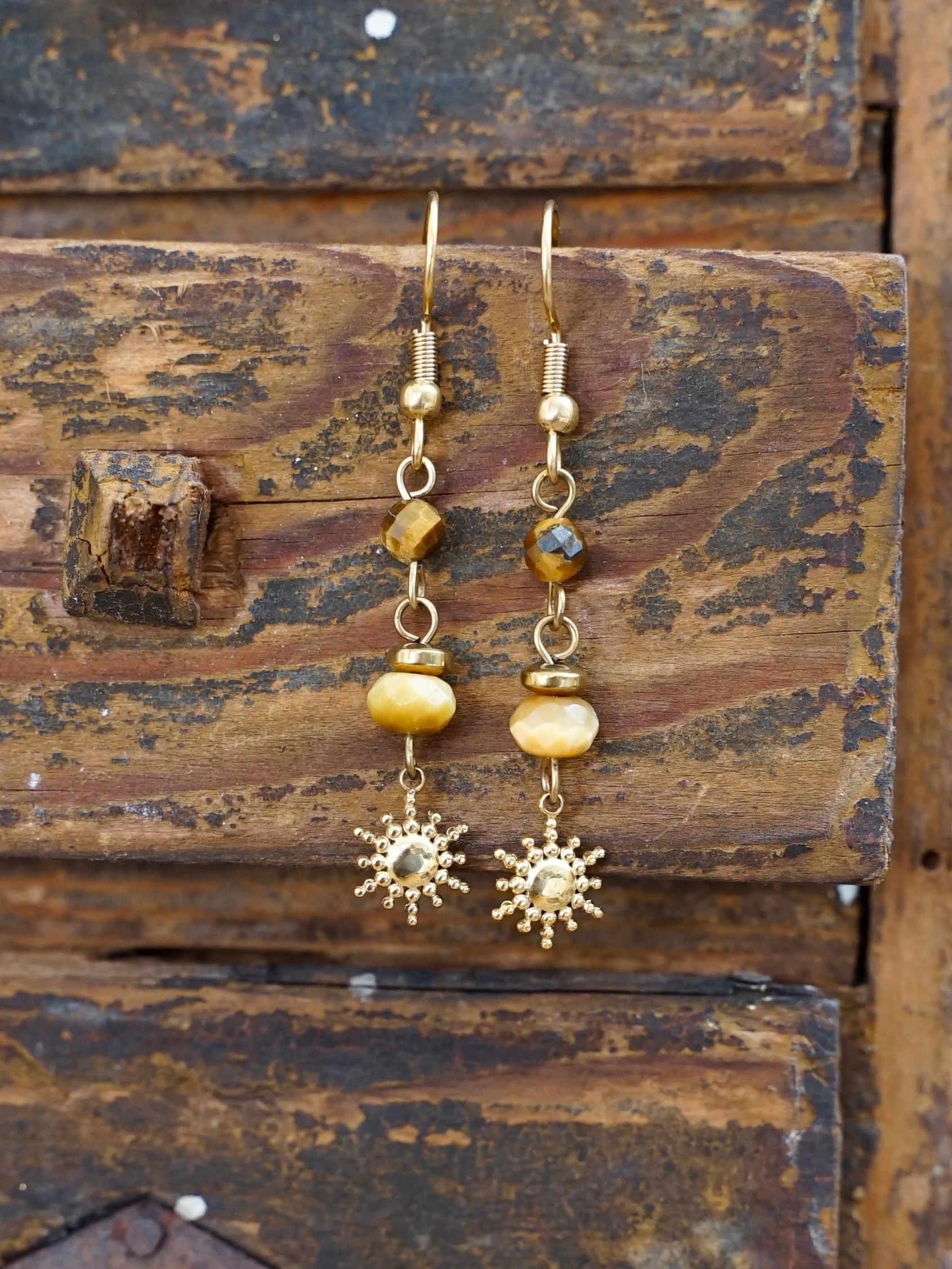 ✨ Handgefertigte Ohrringe mit Tigerauge und Sonnenanhänger