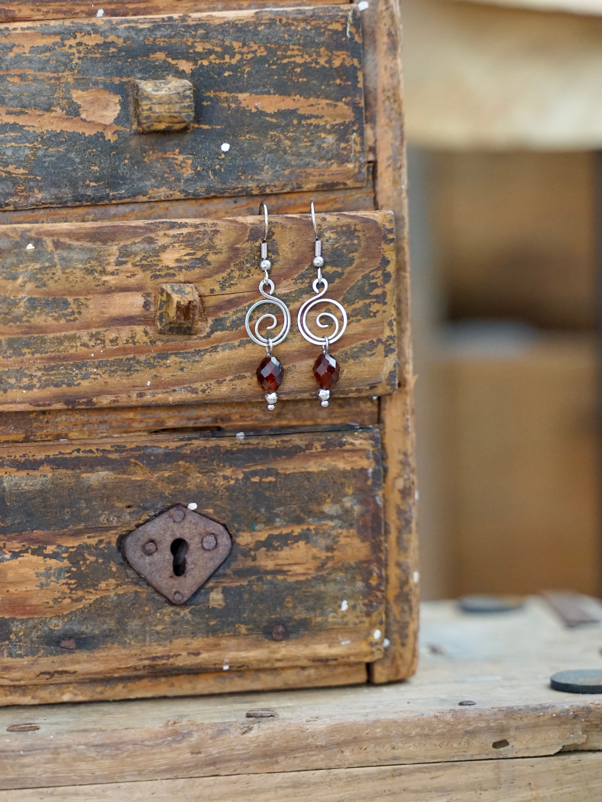 ✨ Handgefertigte Ohrringe mit Granat und Edelstahl-Spirale