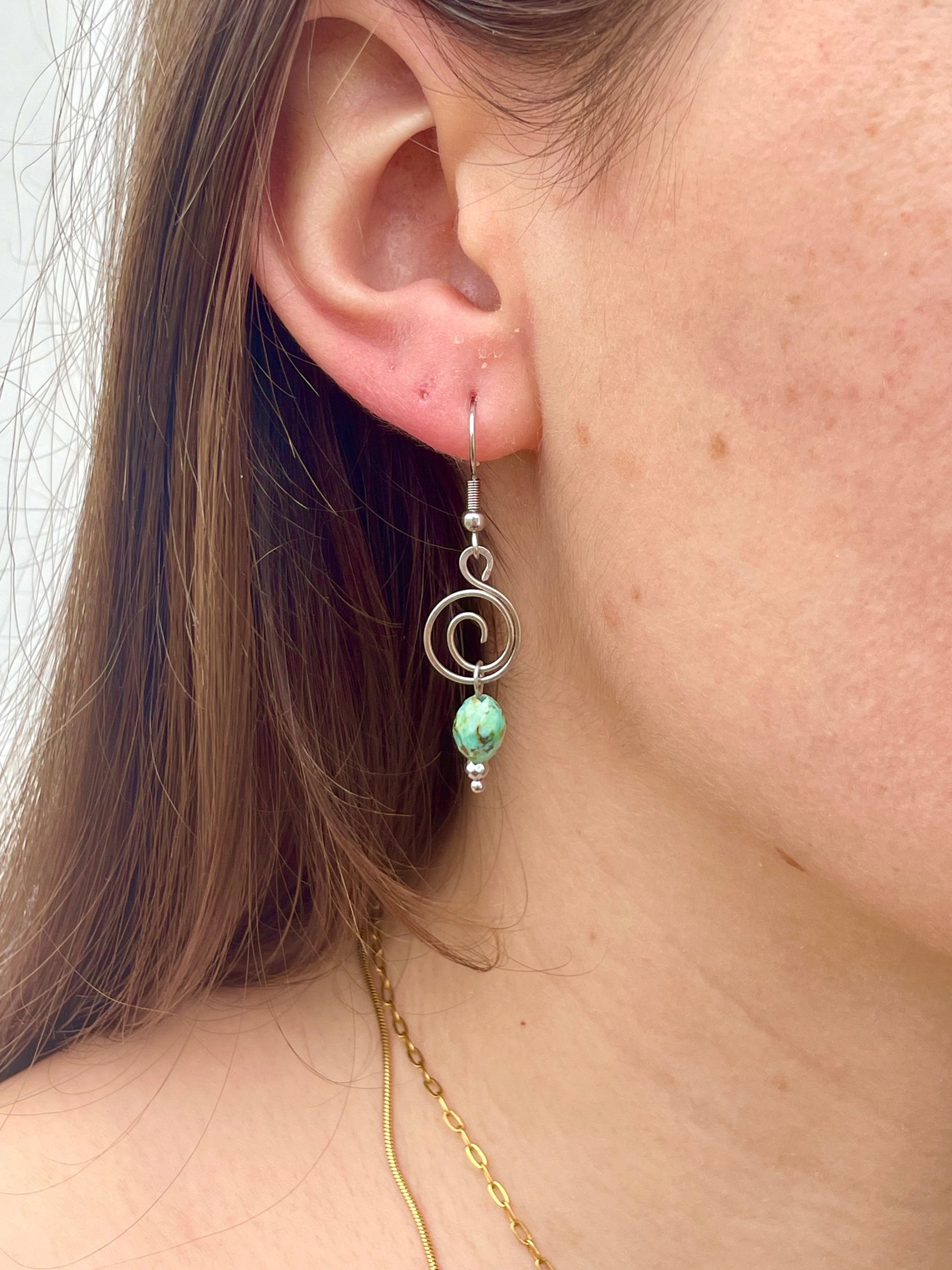 ✨ Handgefertigte Ohrringe mit Türkis und Edelstahl-Spirale
